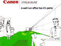 Canon wanted to showcase their office products and services. A golf course was created inside the office.