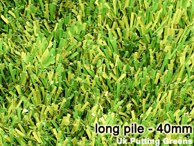 Our fringe comes in different lengths and density, the longer 40mm fringe gives the impression of playing out of the rough as the ball sits deeper in the pile whereas with the shorter pile the ball sits on top of the fringe.